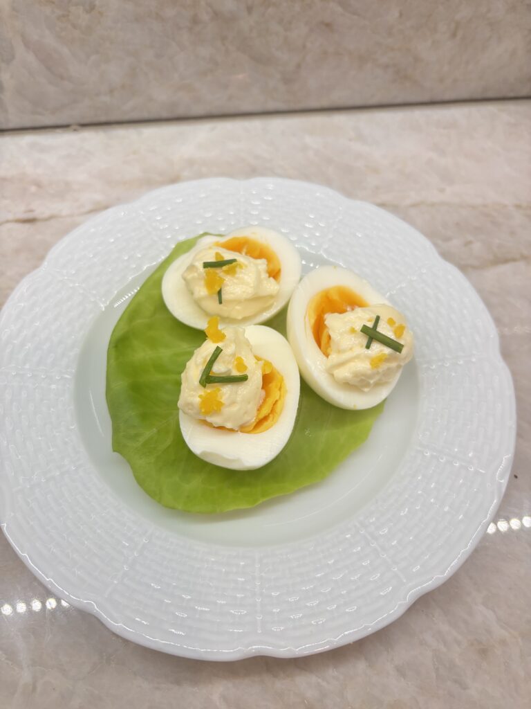 The French usually enjoy deviled eggs (œufs mimosa) as a starter,especially during Sunday lunches, family gatherings, cold buffets,or summer aperitifs. It’s a nostalgic, simple, and refreshing classic that shows up whenever you want an easy, shareable appetizer. Prep Time: 15 minutes Cook Time: 10 minutes Servings: 4 person Ingredients Preparation