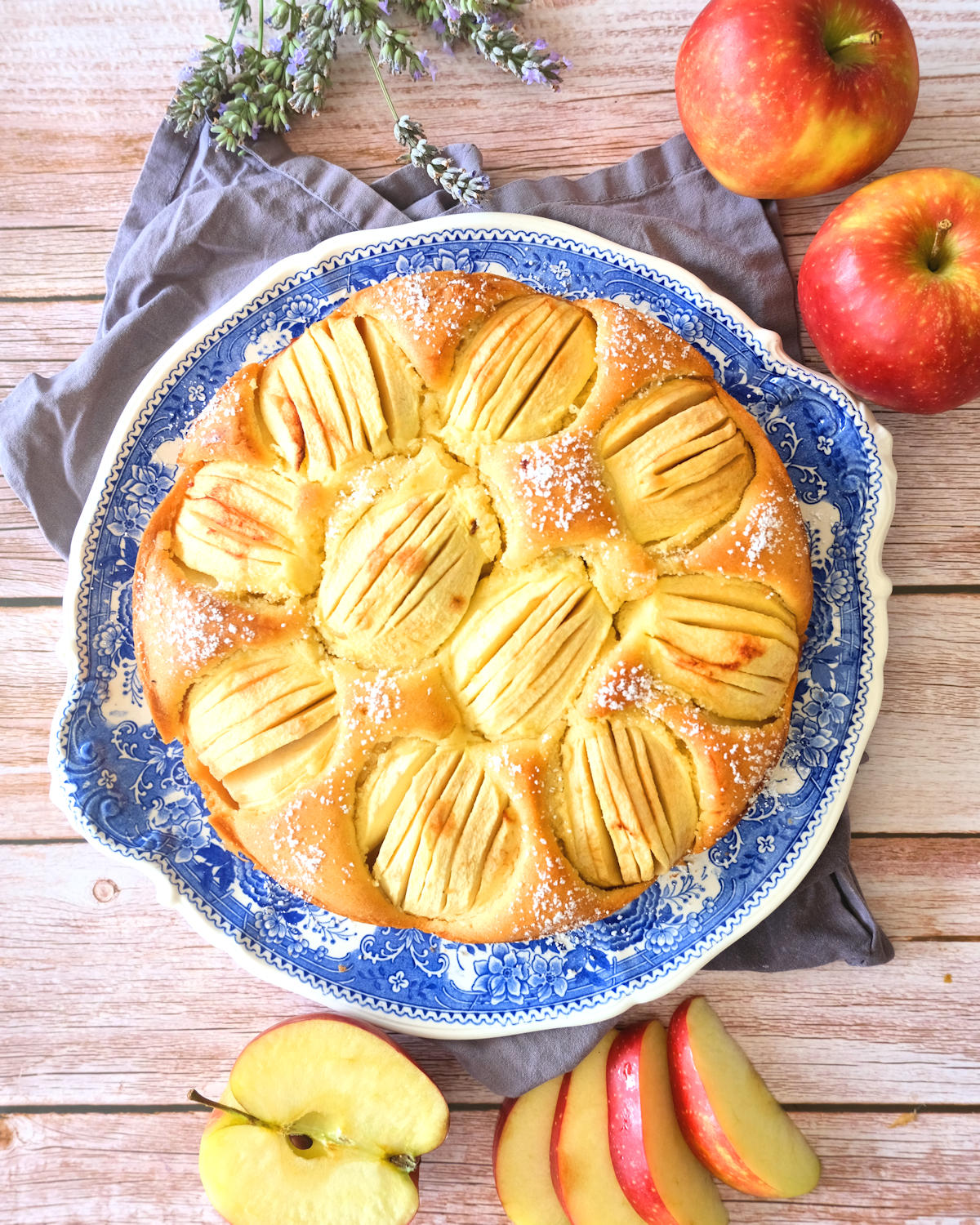 This cake is called Versunkener Apfelkuchen (translated Sunken Apple Cake) because the apples are placed on the batter which rises around them when the cake bakes, so the apples look “sunken in”. Prep Time: 15 minutes Cook Time: 1 hour Servings: 10 slices Ingredients Preparation Recipe by Skandibaking