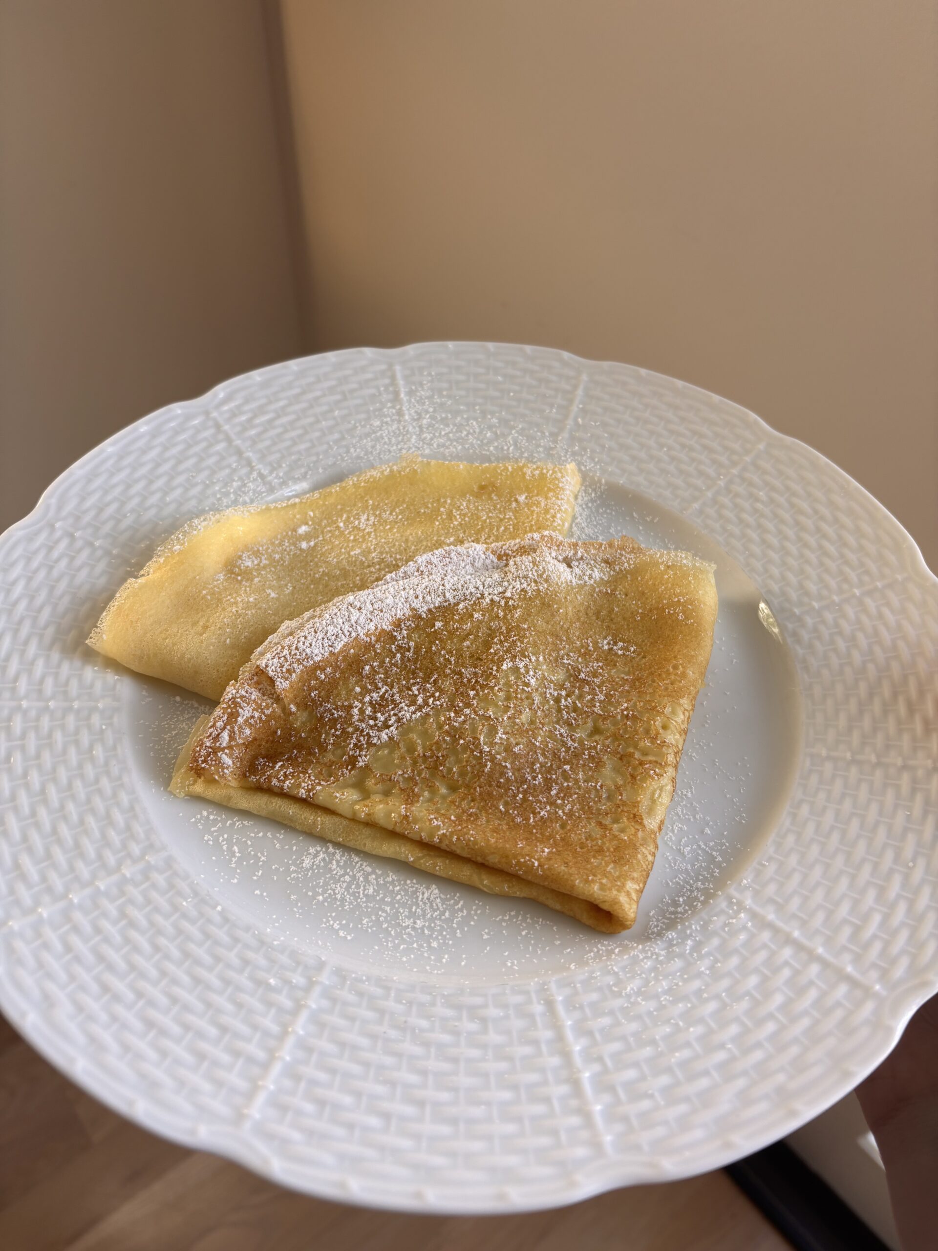 Crêpes are very thin, delicate French pancakes made from a simple batter of flour, eggs, and milk, cooked on a hot pan or griddle. Prep Time: 30 minutes Cook Time: 1 minute on each side Servings: 2 servings Ingredients Preparation