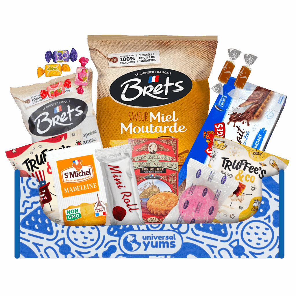 Explore France Rich, simple flavors and decadent confections to celebrate cozy season Buy the France Box Gift the France Box France's Best Yums! Dupont d’Isigny Caramel Assorted Whole Milk Caramels in Hazelnut, Chocolate, Coffee, and Vanilla Flavors Brets Saveur Miel Moutarde Potato Chips With Honey Mustard Flavor Zip Zap Boules Coco Crunchy Coconut & Vanilla Flavored Candies Le Sables de La Mere Poulard Pur Beurre Pure Butter Biscuits Brets Saveur Chevre Piment d’Espelette Potato Chips With Goat Cheese & Espelette Chili Pepper Flavor Brets Saveur Aligot Chips Flavored With Mashed Potato, Melted Cheese, & Butter Mathez Cocoa Powdered Truffles French • Rich • Delish Shop France Yums