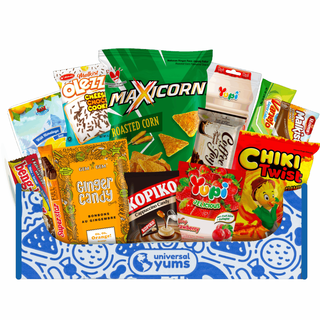 Explore Indonesia Adventurous, island-exclusive flavors that balance sweetness and spice. Buy the Indonesia Box Gift the Indonesia Box Indonesia's Best Yums! Superstar Triple Choco Wafer Filled With Creme Kopiko Cappuccino Candy Cappuccino-Flavored Hard Candies Yupi Yogurt Gummy Gummies With Original Flavor Beng Beng Wafer Crispy Wafer With Caramel and Choco Maxicorn Roasted Tortilla Corn Chips Bekel Set Indonesia's favorite childhood game. Shop Indonesia Yums