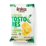 Bold and mouthwateringly spicy, these jalapeno tostones are delicious, crunchy, crispy, and perfect on their own—although they work excellently as a vehicle for some dip too! May we recommend some extra-spicy salsa? Tostones come from the Spanish verb ‘to toast,’ and are chips made from unripe green plantains, twice-fried for ultimate crunchiness. Inka’s Tostones are made from plantains grown, harvested, and prepared in the tropical region of Aguaytia, near the Ucayali River in the Amazon rainforest. Only a tropical location that beautiful could create chips this tasty!