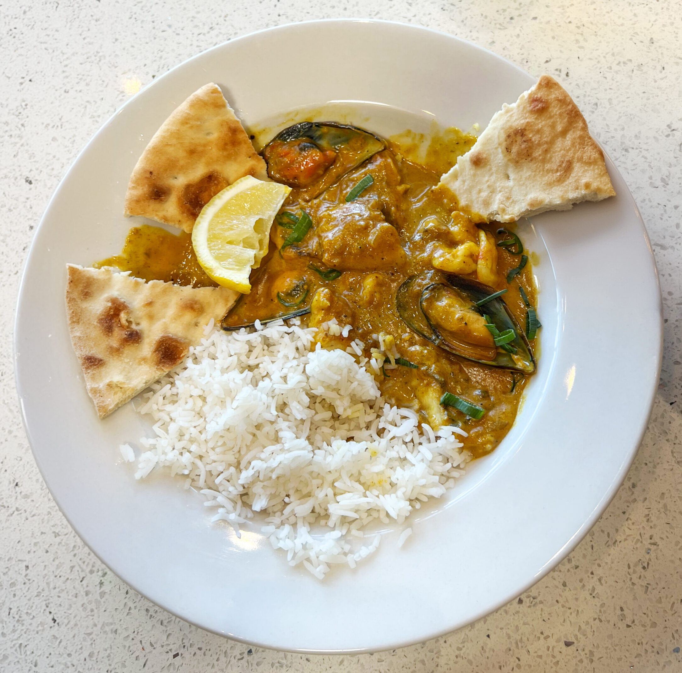 This aromatic Cape Malay Seafood Curry was made famous by the Muslim community in South Africa incorporates fragrant spices with fresh caught seafood. Served with rice and homemade flatbread.