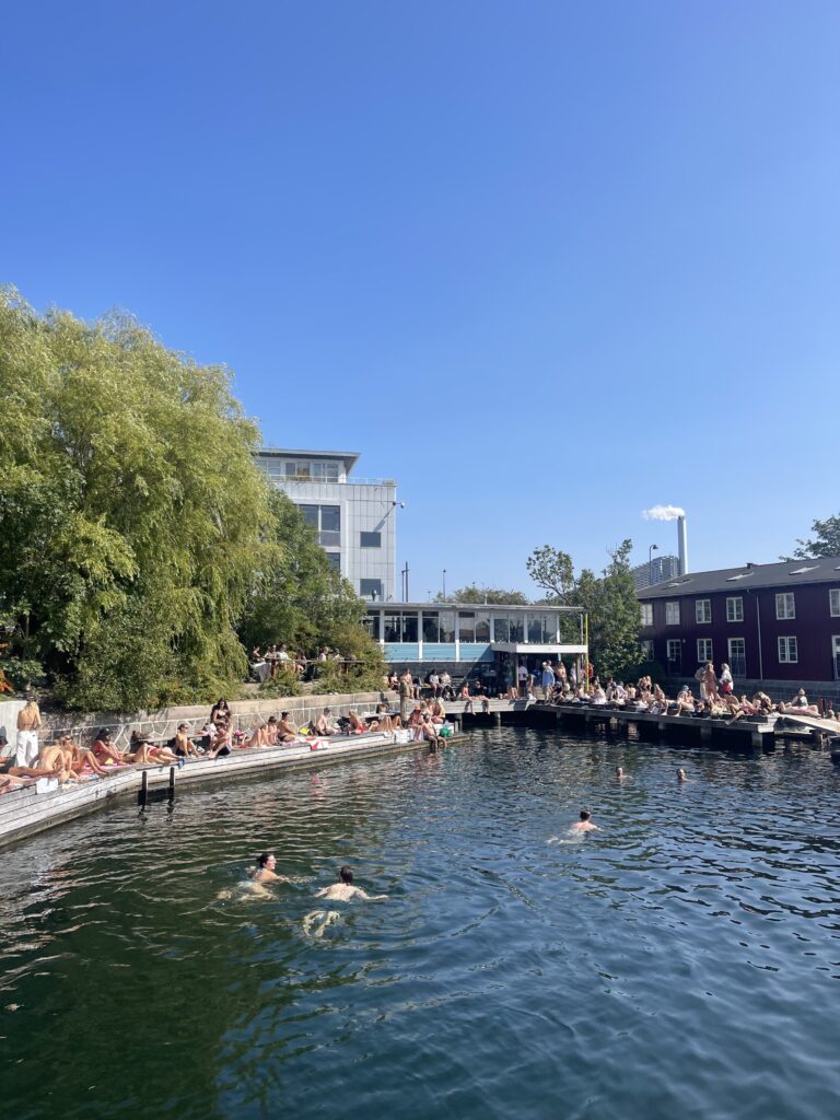 La Banchina at the peninsula Refshaleøen is the perfect spot for a chill day in the sun. You can jump in the water from a small bridge, drink wine, and eat snacks to your heart’s content.