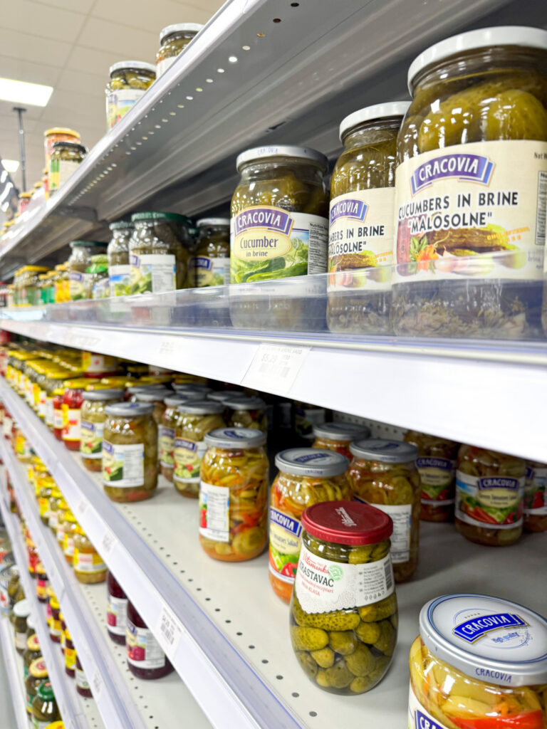 When you’re cooking Polish food in the U.S., you often have to piece ingredients together from international markets. Saraga, a broad international grocery store, carries items that are essential for traditional Polish dishes and hard to find elsewhere. I got Polish pickles, lazanki noodles, and horseradish on my latest trip. Horseradish can be difficult to find fresh around here, but it’s an important ingredient in many Polish recipes and adds so much flavor. Polish pickles are a staple in Polish cuisine (and my house). They’re different from American pickles in both flavor and texture, and I always like to have them on hand. Lazanki is one of my favorite comfort meals, but most American grocery stores don’t carry that pasta shape, and I don’t always want to make it from scratch.